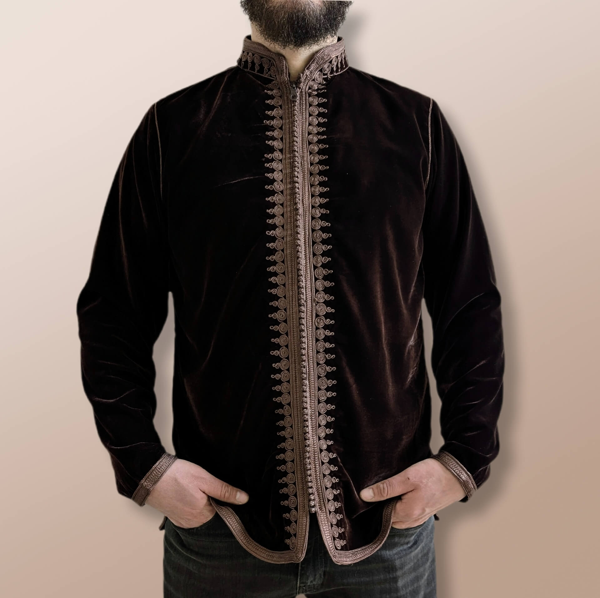 Op zoek naar een bijzonder kledingstuk dat stijl en comfort combineert? Deze fluwelen vest is een echte blikvanger! Met een prachtig sfiffa borduursel van boven tot onder, straalt deze vest klasse en vakmanschap uit. De handige rits maakt hem niet alleen stijlvol, maar ook praktisch in gebruik.